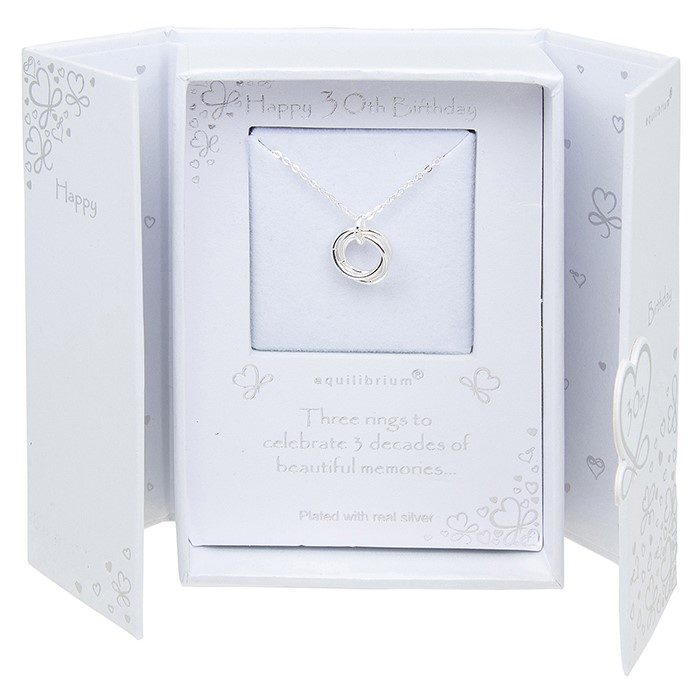 Age 30 Three Rings Silver Plated Necklace