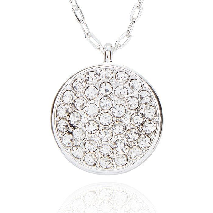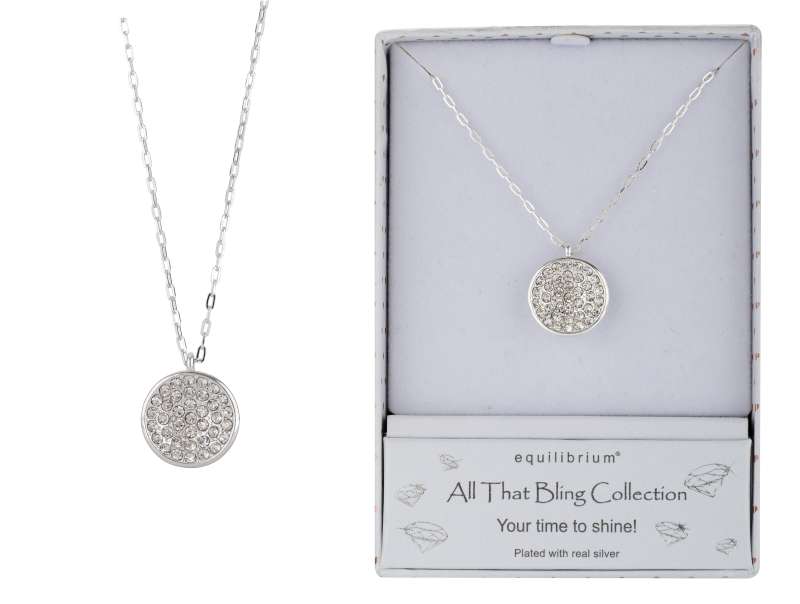 Bling Sparkle Disk Silver Plated Necklace