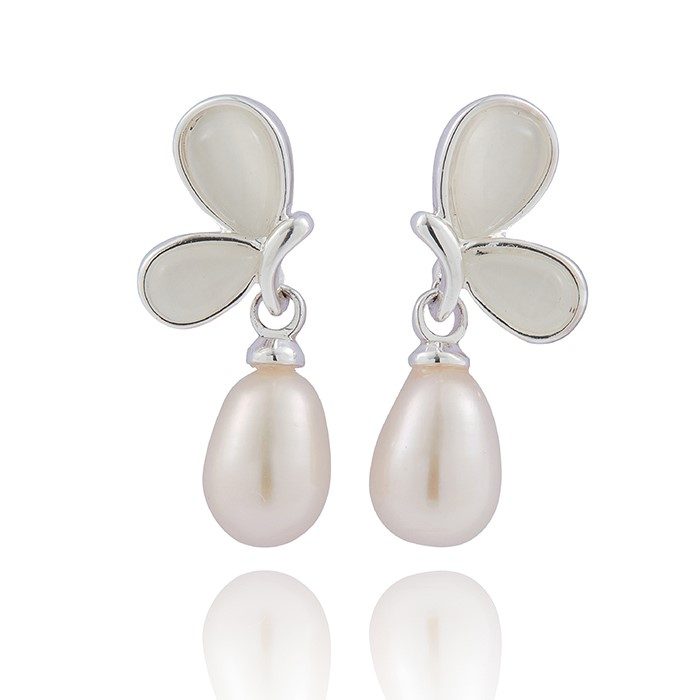 / Butterfly Freshwater Pearl Silver Plated Earrings