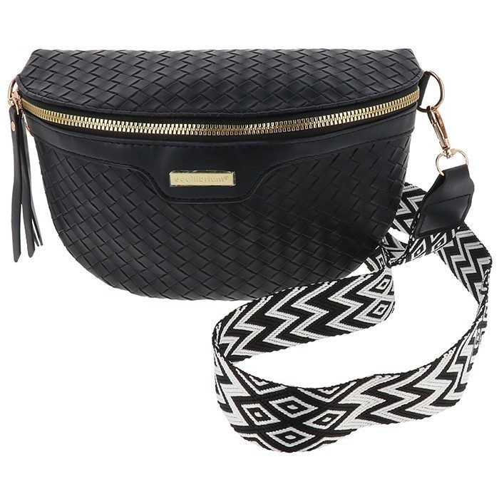 / Cross Body Woven Look Bum Bag Black