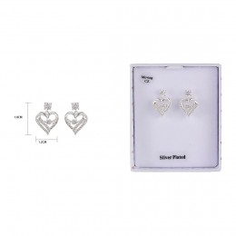 Equilibrium Luxe Tag Sparkle Heart Silver Plated Earrings