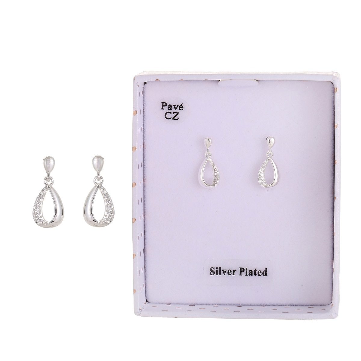 Geometric V Silver Plated cz Stud Earrings by Equilibrium