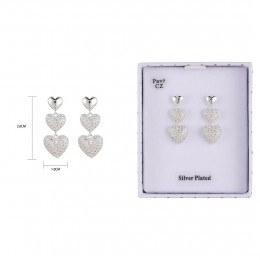 Equilibrium Luxe Tag Sparkle Heart Silver Plated Earrings