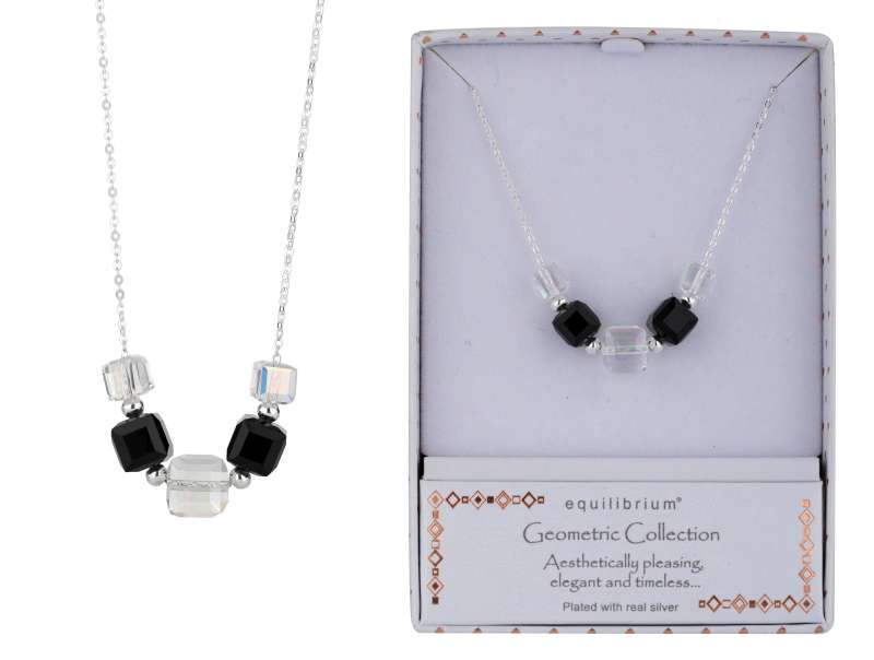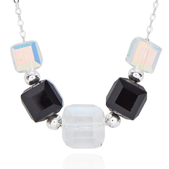 / Geometric Crystal Cubes Silver Plated Necklace