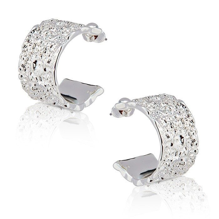 / Molten Metal Textured Silver Plated Hoop Earrings