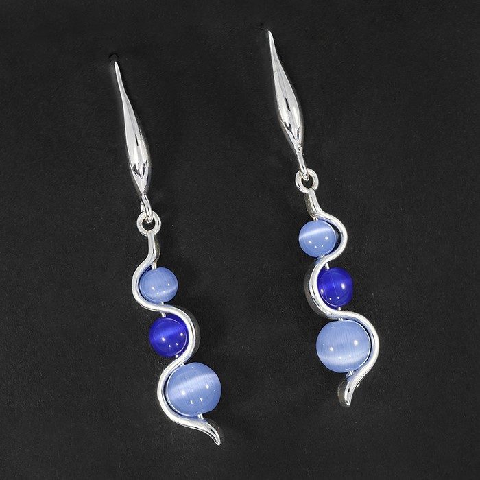 / Moonstone Ripple Silver Plated Earrings Blue