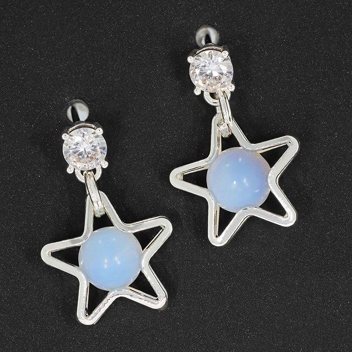 / Moonstone Star Silver Plated Earrings Clear