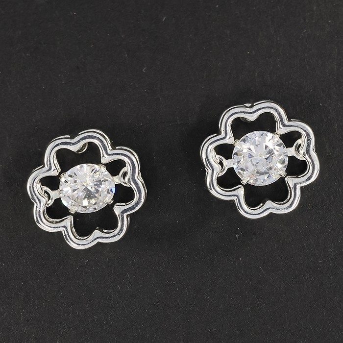 Moving Crystals Silver Plated Clover Earrings