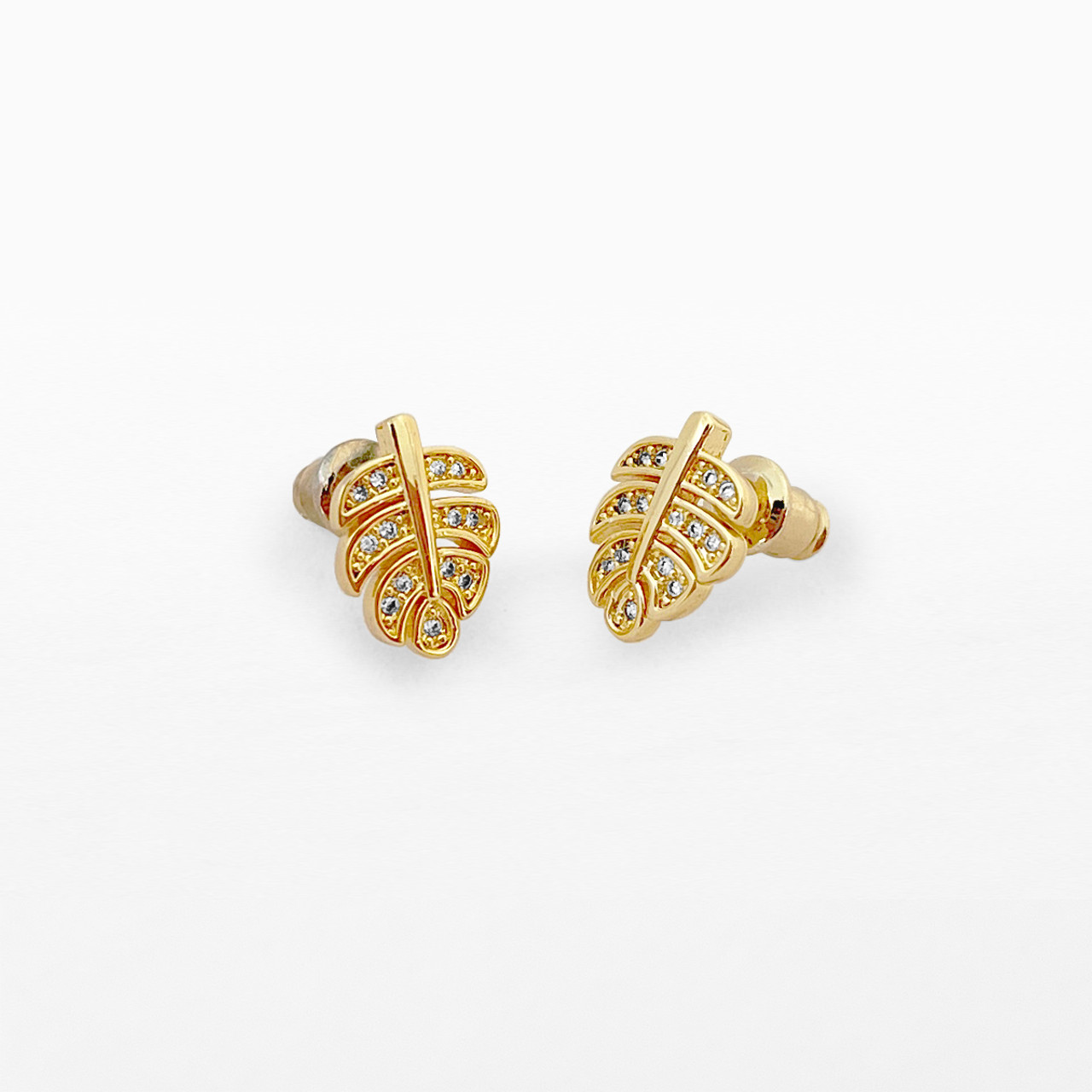 Palm leaf gold plated stud earrings with cz stone.