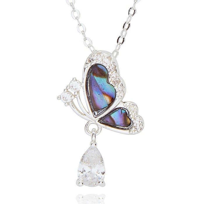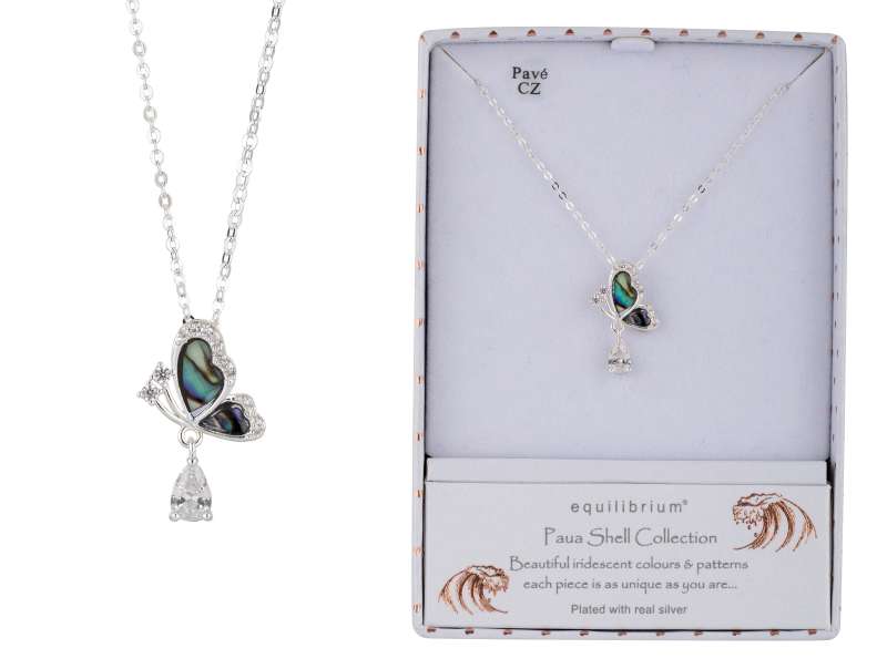 Paua Shell Flutterby Silver Plated Necklace