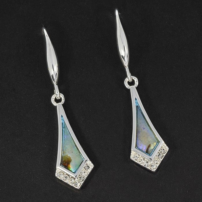 Paua Shell Modern Kite Silver Plated Earrings