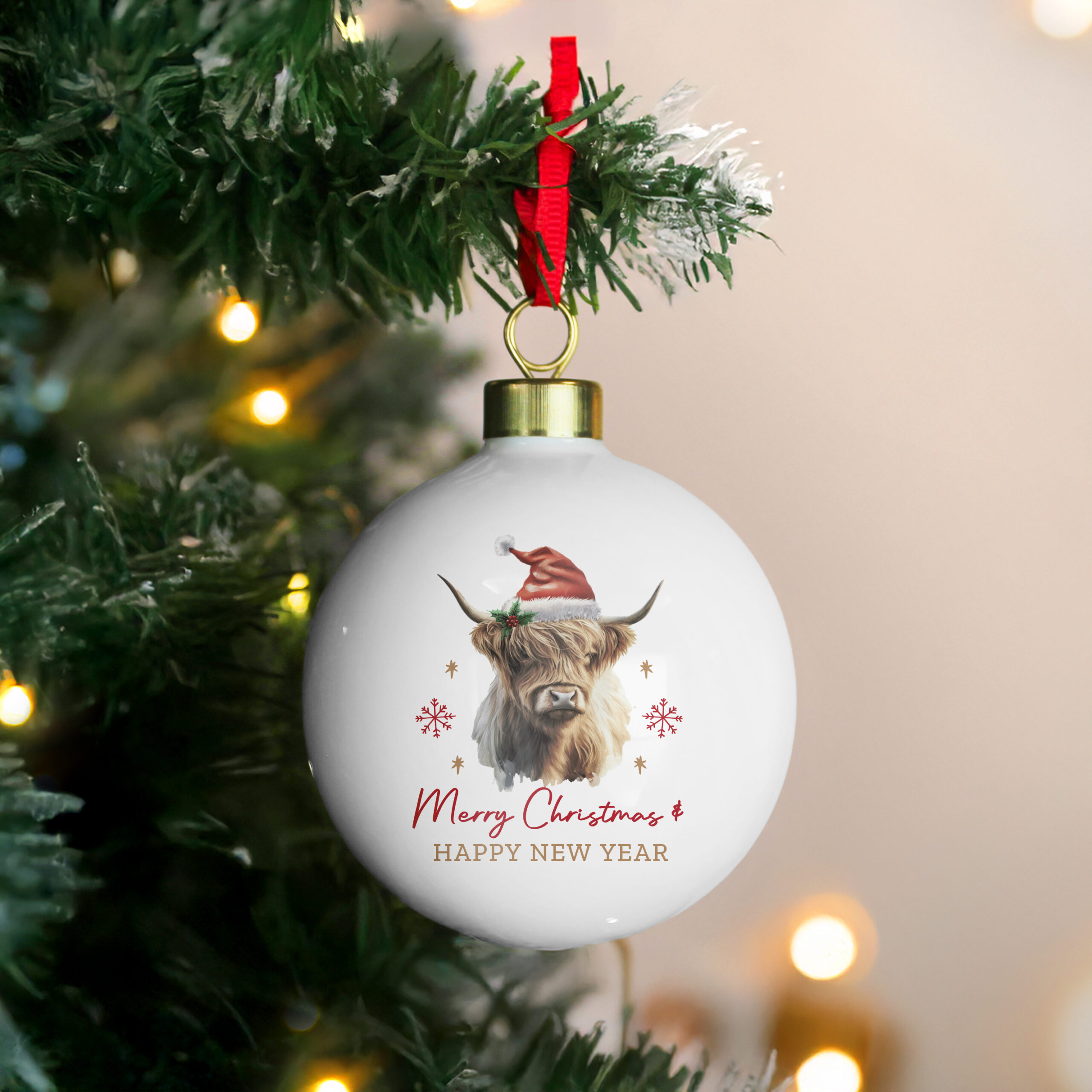 Bring a touch of rustic charm to your festive décor with this delightful Personalised Highland Cow Christmas Bauble.