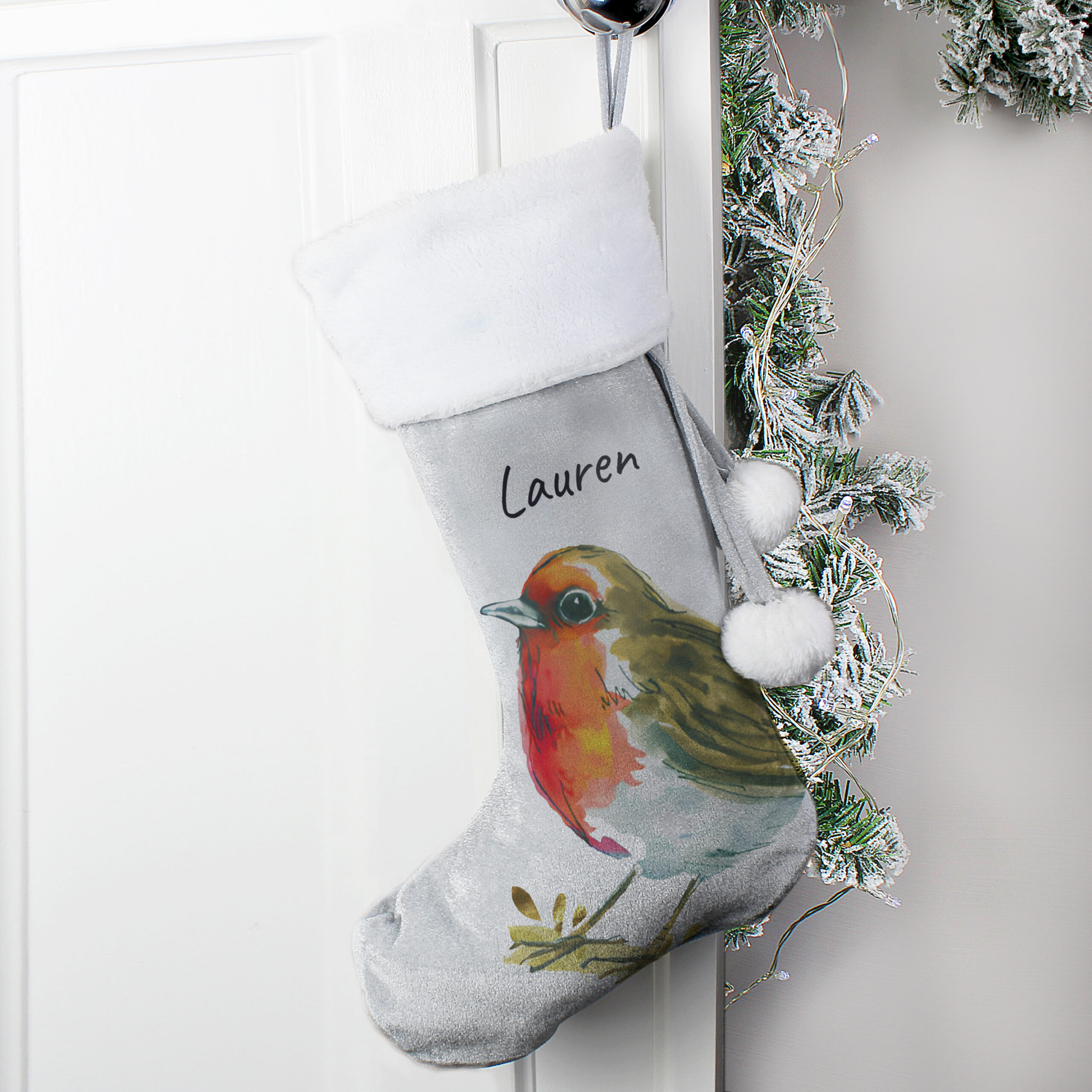 Our Robin Silver Grey Stocking is a great way to present their Christmas treats this year or to simply use as a decoration