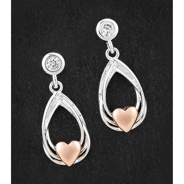 Polished Two Tone Contempary Heart Earrings