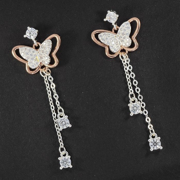 / Polished Two Tone Silhouette Butterfly Earrings