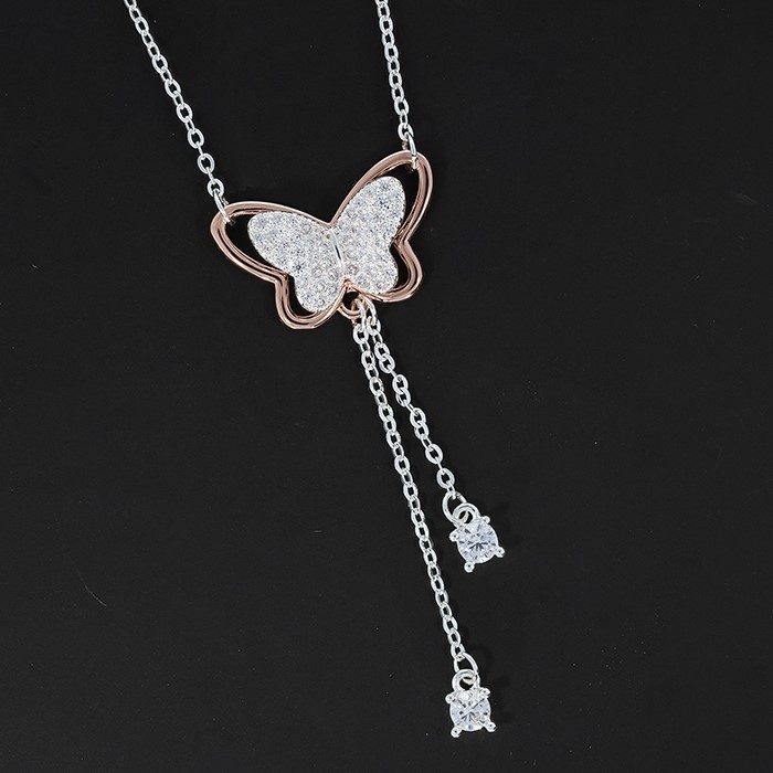 / Polished Two Tone Silhouette Butterfly Necklace