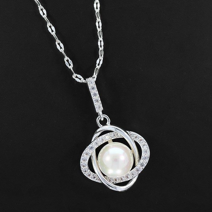 Sparkle Pearl Knot Silver Plated Necklace