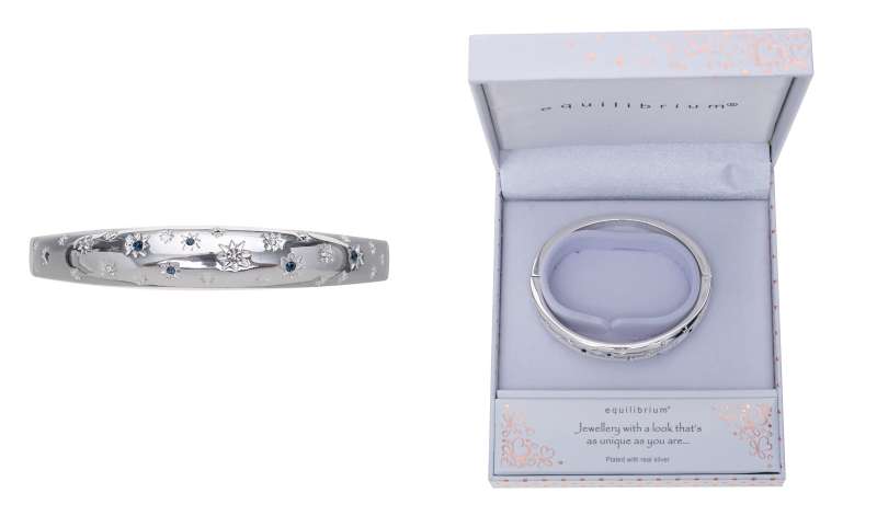 Equilibrium Forget Me Not Framed Silver Plated Bangle