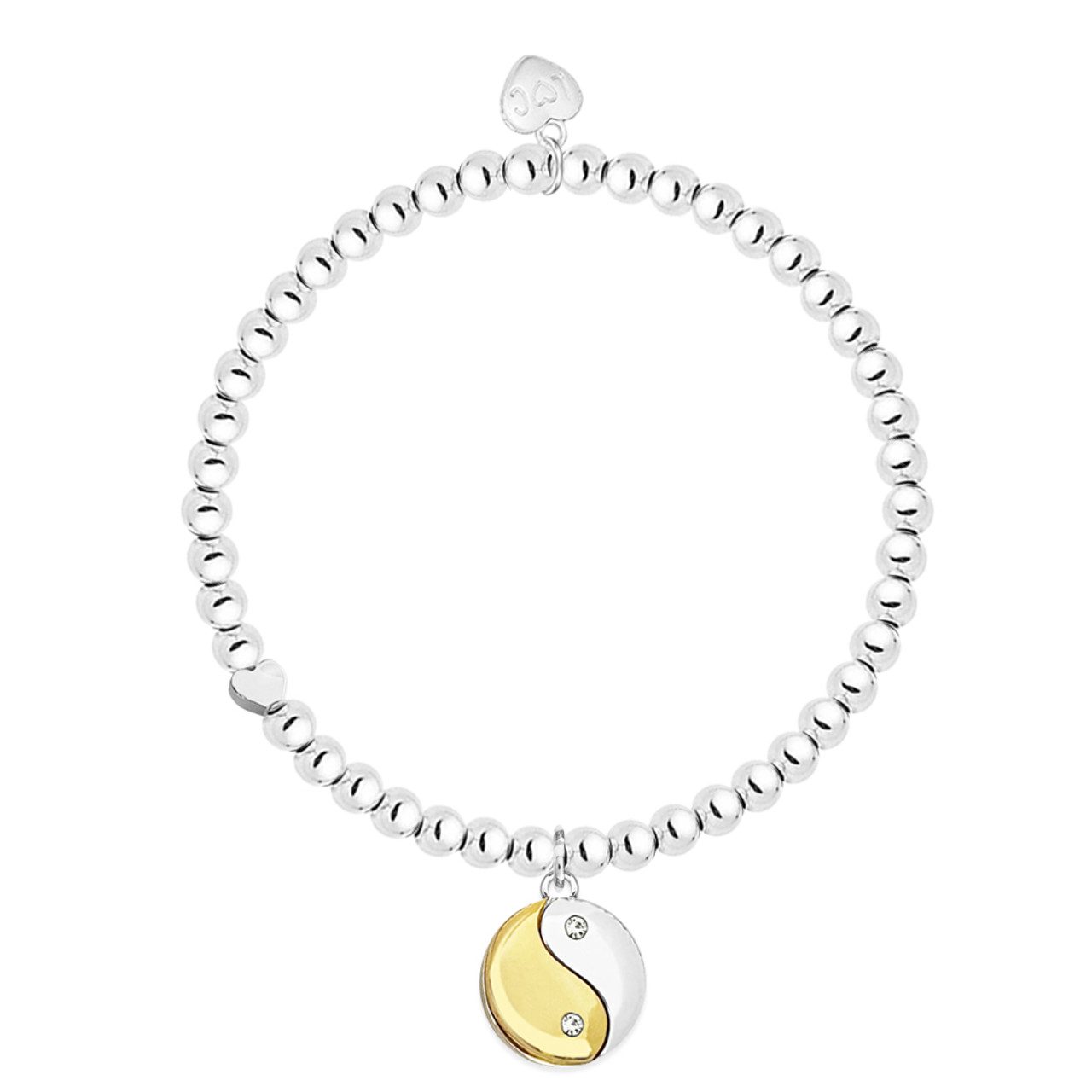 Pure silver plated flower charm presented on a 5mm beaded stretch bracelet.